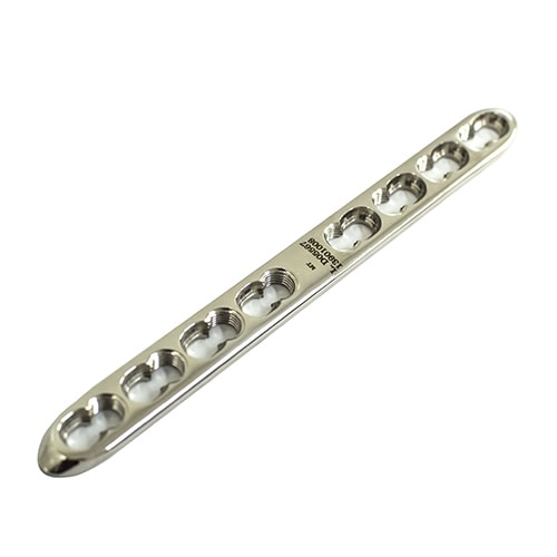 Bajo perfil, bajo contacto bloqueada con posibilidad de usar tornillos de 3,5 mm corticales y bloqueados en la misma placa.